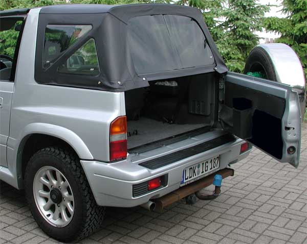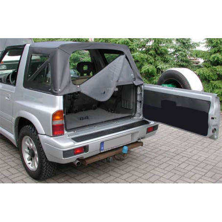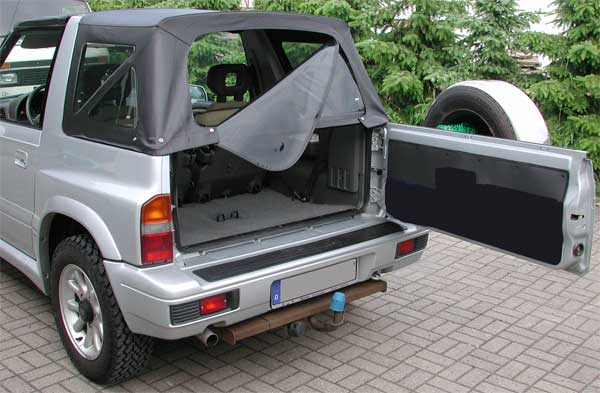 Beim Original Suzuki Vitara Verdeck ist das Heckfenster an der Türe festgeklipst.